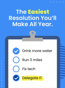 Suddenly, your “get our IT under control” goal is buried under client emergencies, file access issues, and another printer jam. Just like that, your big business resolution is now hiding under a coffee mug.